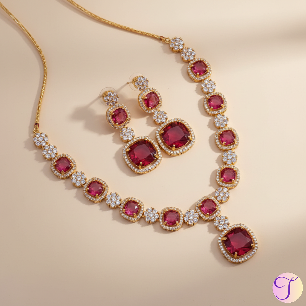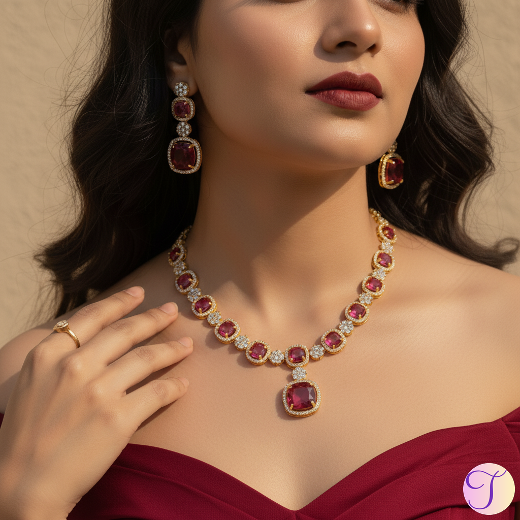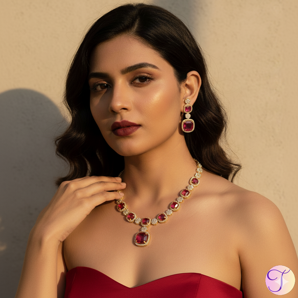 Whether it’s your best friend’s wedding or a date night you’ve been looking forward to, this American Diamond Necklace Set is the one piece you’ll keep reaching for. Chic, timeless, and affordable—it’s jewellery you’ll never want to take off.