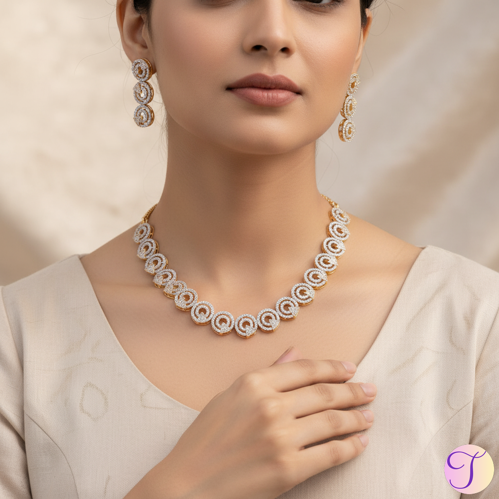 Radiant Loops American Diamond Golden Necklace Set