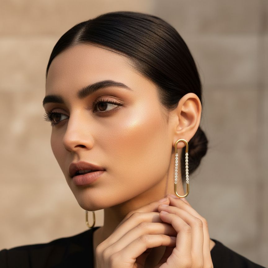 Inspired by the clean lines of modern sculpture and the timeless sparkle of a constellation, the Aura Diamond Cascade Earrings represent the pinnacle of contemporary fine jewelry. This design is a tribute to the discerning woman who appreciates bold geometry softened by the irresistible allure of brilliant diamonds. They are not merely accessories, but a wearable piece of art that frames the face and illuminates your presence with effortless sophistication.