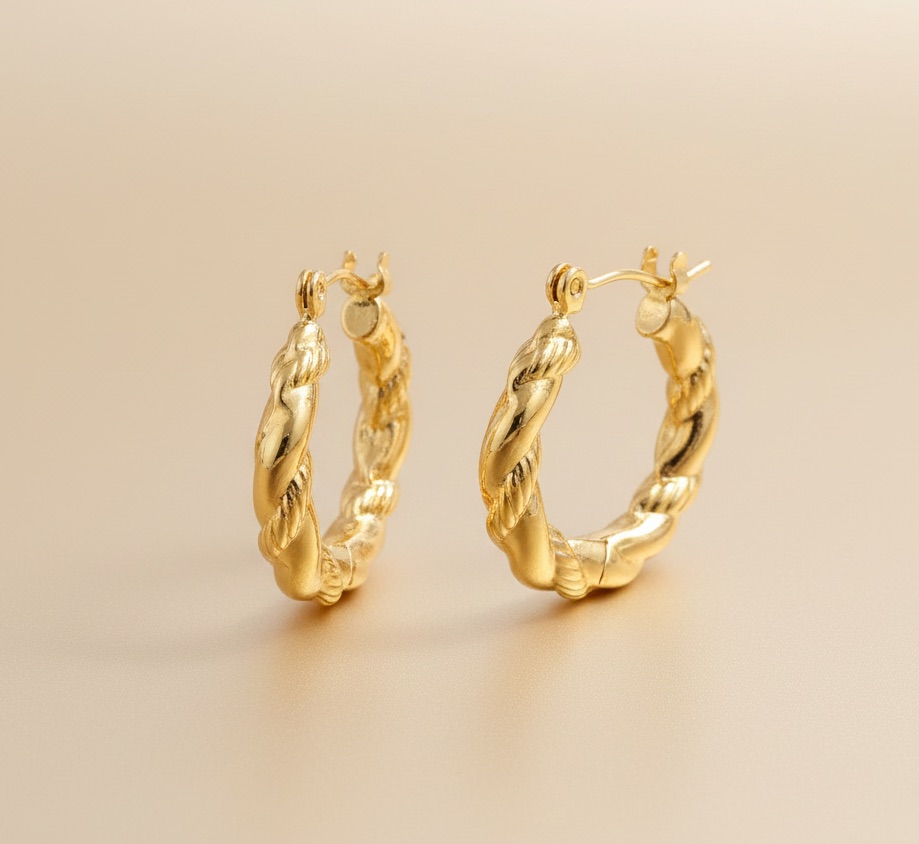 Crafted for sophistication and lasting wear, these anti-tarnish earrings are designed to resist fading and maintain their magnificent luster through everyday use. The smooth interior and well-engineered closure ensure comfortable wear, making them suitable for prolonged periods, even for those with sensitive skin due to their hypoallergenic nature. The classic hoop shape, elevated by the unique weave texture, provides remarkable versatility, easily pairing with both casual ensembles and more formal attire.