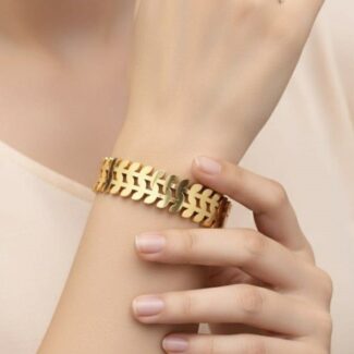 The anti-tarnish kada showcases a unique hexagonal pattern that wraps around the wrist, offering a fresh and contemporary aesthetic. Its structured design creates a subtle yet captivating texture that complements various looks effortlessly. The high-shine polished finish adds an elegant glow, accentuating the geometric details with a refined luster.