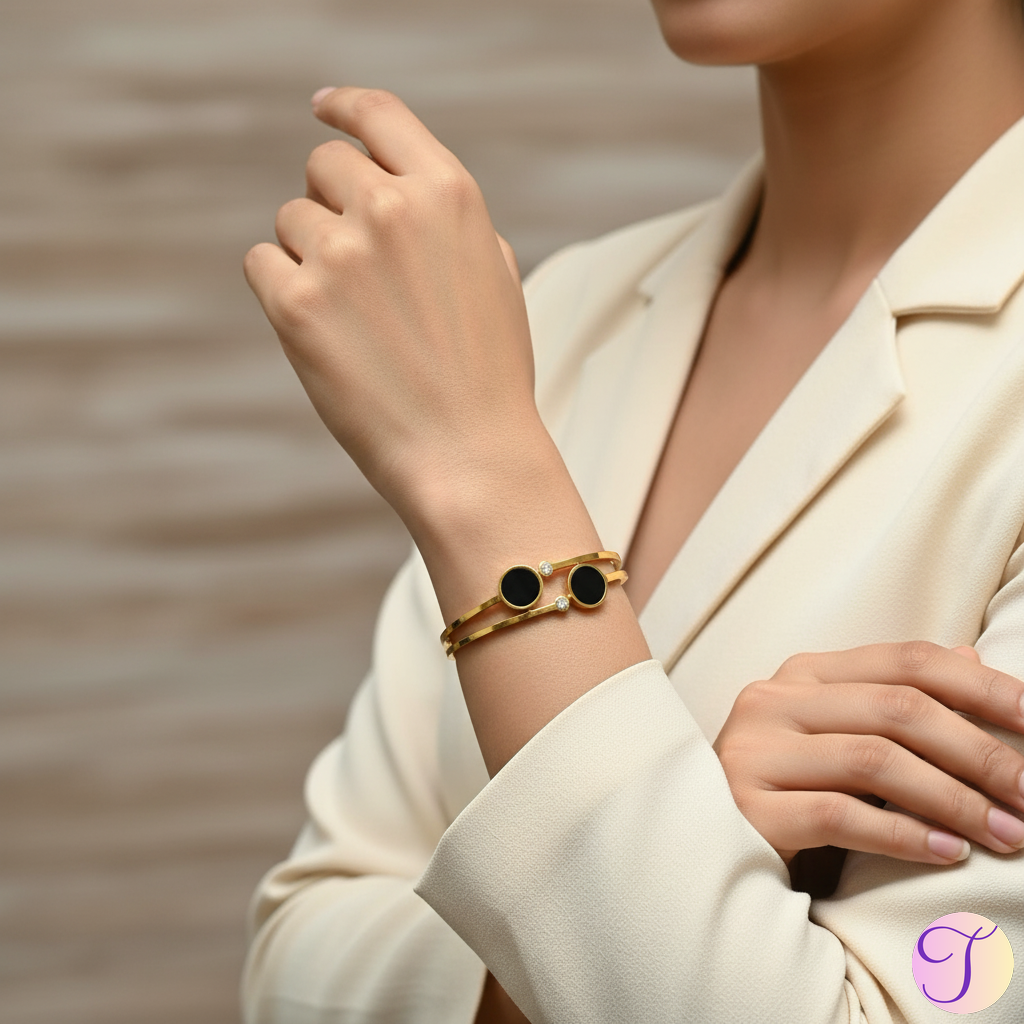 Midnight Radiance Golden Anti-Tarnish Kada Bracelet