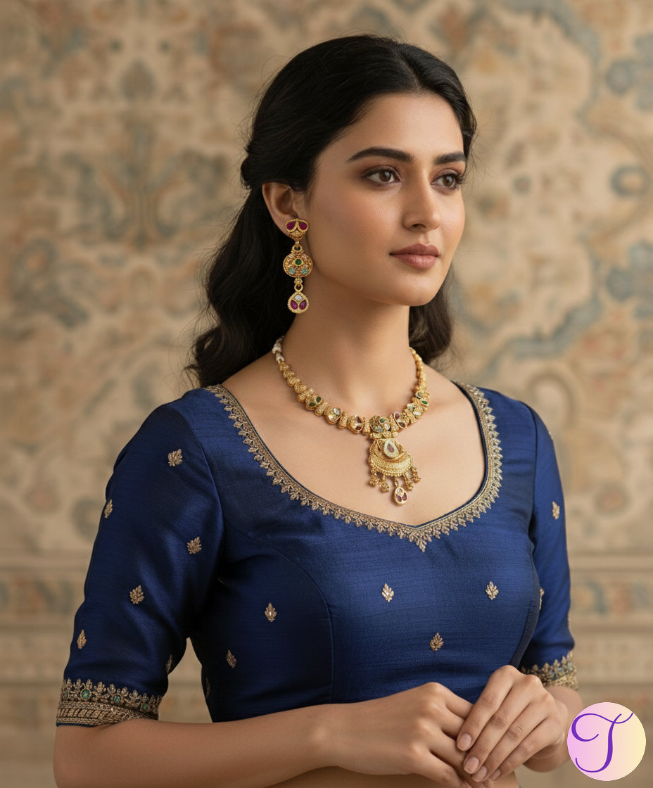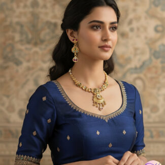 Elevate your festive collection with this statement necklace set. Its classic, opulent design makes it the ultimate accessory for weddings, Diwali, Navratri, and other landmark celebrations. This Rajwadi necklace set is designed to pair flawlessly with traditional silk sarees, lehengas, and formal ethnic wear, instantly transforming your attire into a vision of regal grace.
