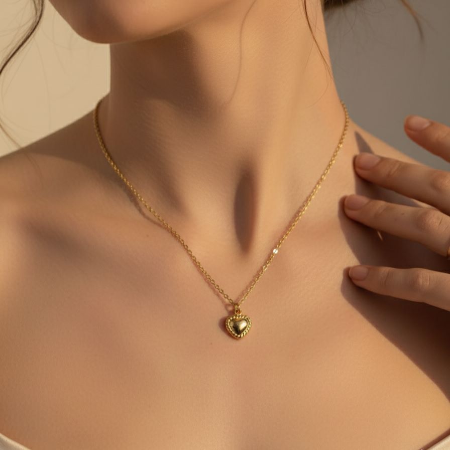 Precision and Enduring Brilliance. Crafted for longevity, this pendant necklace is subject to rigorous finishing standards. It is bathed in a generous layer of 18K gold plating to achieve its rich, luminous hue. The expert polishing accentuates the contours of the heart, while a protective, premium anti-tarnish coating ensures the piece retains its flawless radiance, making it reliable anti tarnish jewellery.