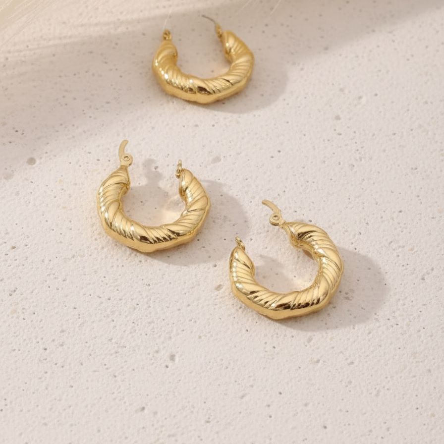 These are more than just hoop earrings; they are miniature works of wearable art. The design draws inspiration from fluid architectural forms, featuring a striking fluted or ribbed texture that gives them an immediate sense of depth and luxury. The puffed, chunky silhouette delivers a bold, modern edge, creating a powerful visual impact that anchors any outfit. They embody an aesthetic where classic geometry meets contemporary volume, symbolizing sophisticated strength and understated confidence.