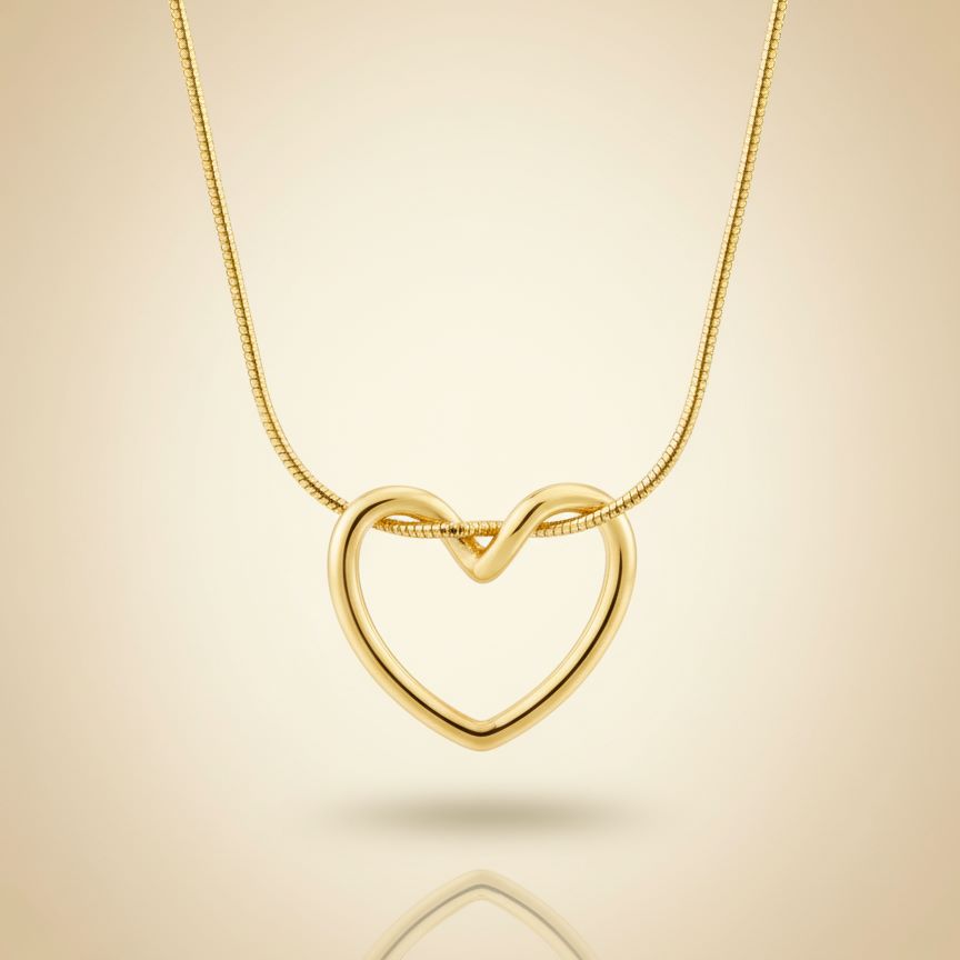 The Sculpted Heart Pendant Necklace offers a modern, abstract interpretation of the classic symbol of affection. The open, fluid heart design is crafted with a flawless, high-polish finish, creating a beautifully continuous form. Set on a sleek snake chain, this piece of elegant jewellery flows with grace, capturing the essence of timeless design. It’s a subtle yet striking luxury pendant perfect for conveying deep sentiment and sophisticated style.