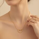 Inspired by continuous lines and the universal symbol of the heart, the Sculpted Heart Pendant Necklace reinterprets romance for the contemporary wearer. The open heart is meticulously formed to possess a sculptural, three-dimensional quality, appearing to float effortlessly along the neckline. This design achieves a perfect harmony between emotional symbolism and modern minimalism, creating a profound yet understated timeless design.